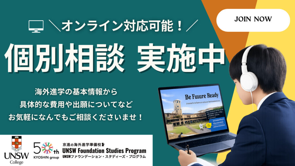UNSW_Kyoto経由なら学生ビザが不要なため、2026年3月or8月から海外進学への第一歩が踏み出せます!